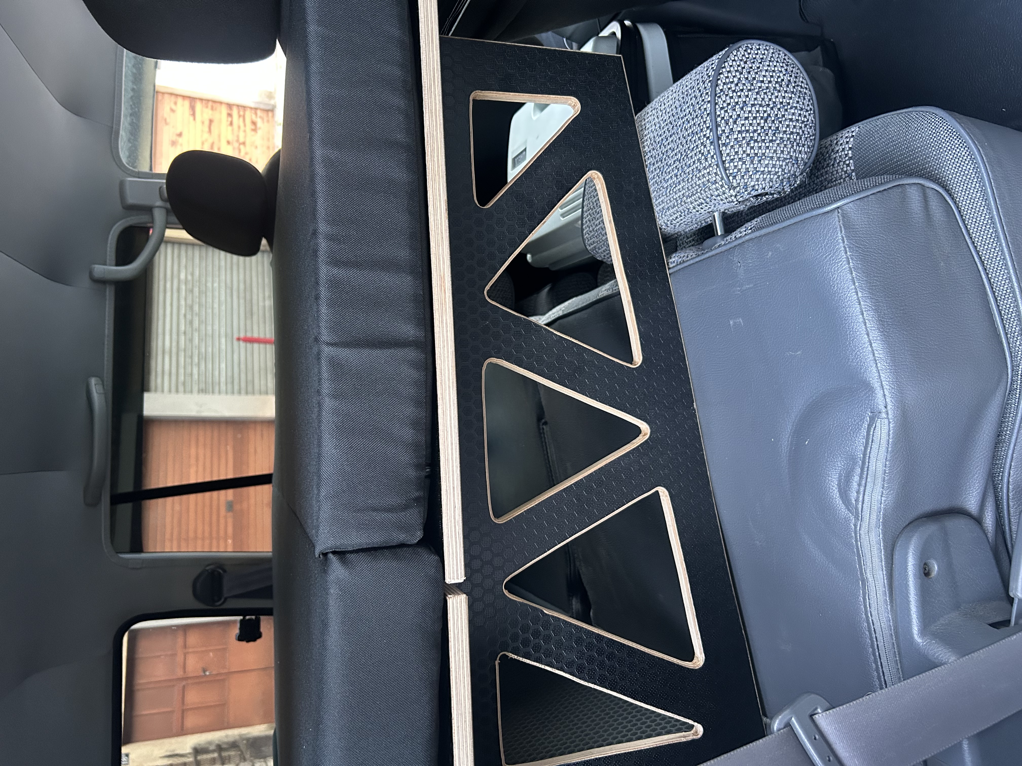 cette aménagement intègre aussi un lit convertible qui vient de déplier au dessus de la banquette arrière