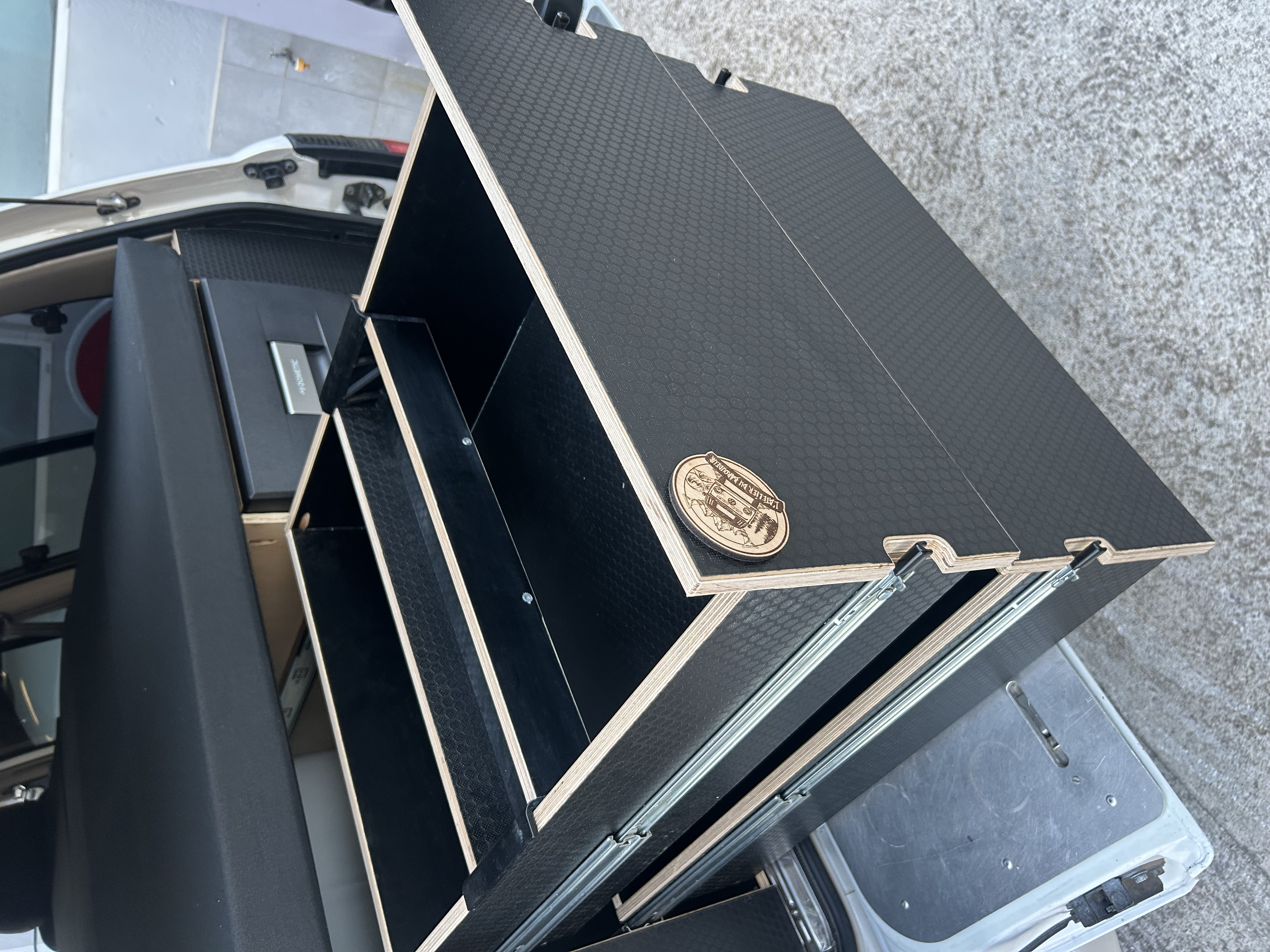 l'atelier a réalisé pour ce 4x4 Toyota un aménagement du coffre sur mesure.